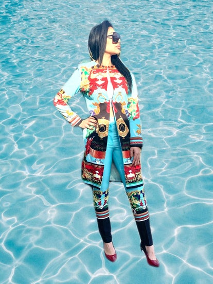 Un ensemble puissant, raffiné et audacieux, qui incarne la féminité affirmée, le charisme, et l’élégance intemporelle signée Lay Saphir.