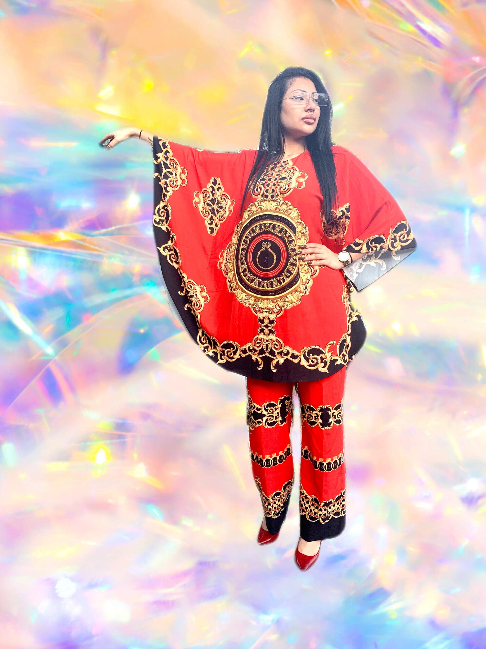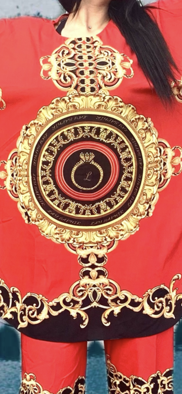 ENSEMBLE TUNIQUE LAY SAPHIR – ROUGE & DORÉ