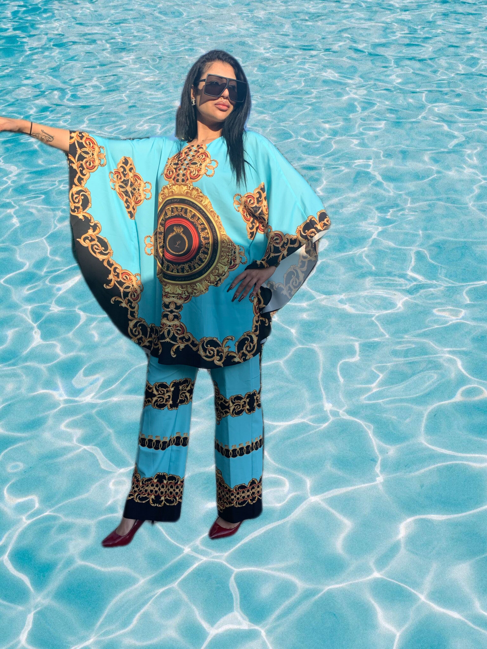 ENSEMBLE TUNIQUE LAY SAPHIR – BLEU CIEL & DORÉ